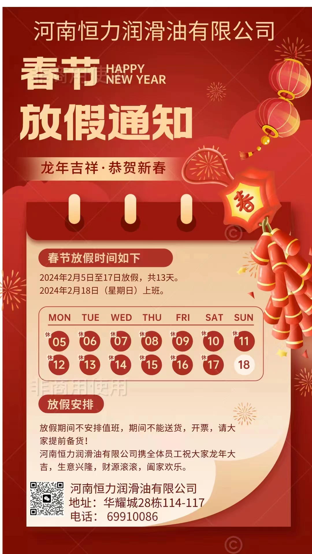 恒力潤滑油公司恭祝新老朋友新年快樂